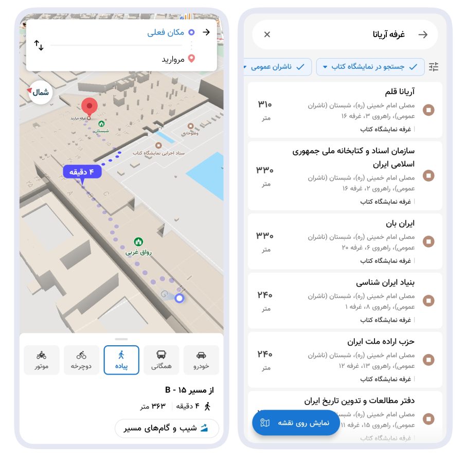 نمایشگاه کتاب تهران به عنوان بزرگترین گردهمایی اهالی کتاب و احتمالا بزرگترین نمایشگاه سالانه کشور هر سال در شهر تهران برگزار میشود. نقشه و مسیریاب نشان همزمان با برگزاری این نمایشگاه جزئیاتی کامل از محیط نمایشگاه را در نقشه خود ارائه کرد تا کاربران بتوانند تجربه بهتری از حضور در نمایشگاه کتاب داشته باشند.