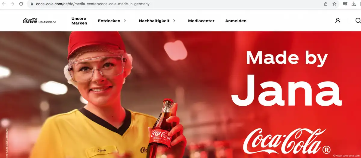 این شرکت اخیرا کمپینی با شعار «ساخته شده توسط [نام کارمند] ساخت آلمان» راه‌اندازی کرده که در آن تصاویر کارمندان محلی خود مانند «دانیل» (Daniel)، «هایکه» (Heike) و «محمد» (Muhammed) را به نمایش می‌گذارد. کوکاکولا در بیانیه‌ای اعلام کرد: «این کمپین با هدف نمایش ریشه‌های عمیق کوکاکولا در آلمان طراحی شده است.» به گفته این شرکت، بسیاری از آلمانی‌ها نمی‌دانند که بخش عمده محصولات کوکاکولا در همان کشور تولید و بسته‌بندی می‌شود.