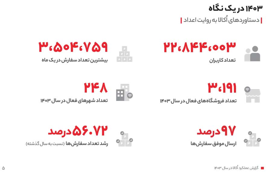 این گزارش در نهایت نشان میدهد که «اُکالا» سال ۱۴۰۳ را با تمرکز بر رشد کمی و کیفی به پایان رسانده و قصد دارد در آینده با تکیه بر داده و فناوری، مسیر خود را برای ارایه خدمات بهتر به کاربران و شرکای تجاری ادامه دهد.
