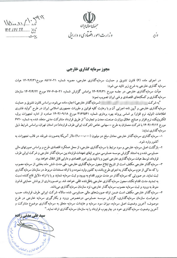 ثبت این سرمایهگذاری خارجی توسط وزارت اقتصاد، نشاندهنده حمایت دولت از جذب سرمایههای خارجی غیرنقدی و توسعه همکاریهای فناورانه با کشورهای همسایه است. این توافق میتواند الگویی برای همکاریهای مشترک منطقهای باشد.
