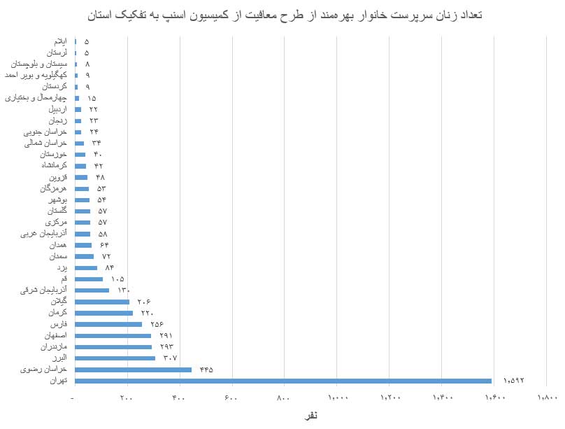 (جدول ۱- تعداد زنان سرپرست خانوار بهره‌مند از طرح معافیت از کمیسیون اسنپ به تفکیک استان)