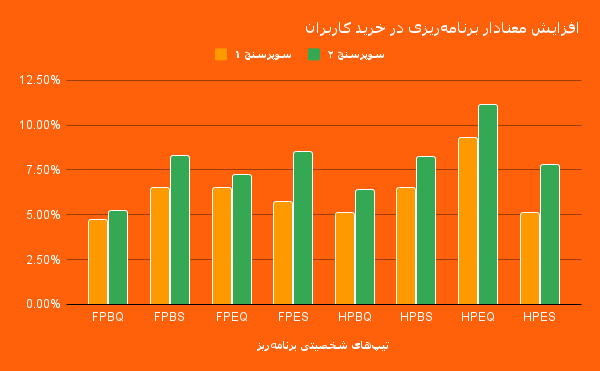 بیشترین رشد نسبی در دوره دوم سوپرسنج ۲ متعلق به FPES (لذتجو، برنامهریز، تجربهگر، حساس به قیمت) است. شاهدی دیگر بر افزایش سهم برنامهریزی و حساسیت به قیمت در میان کاربران.