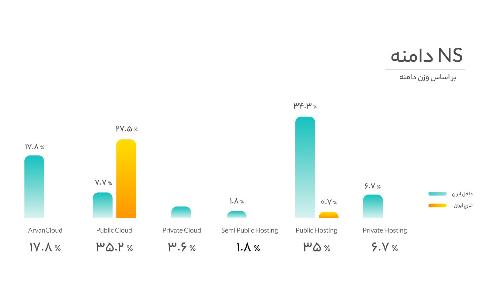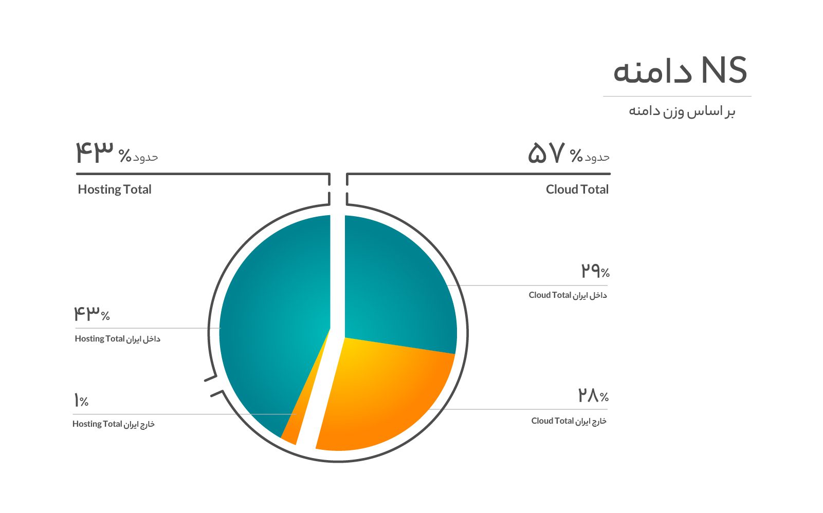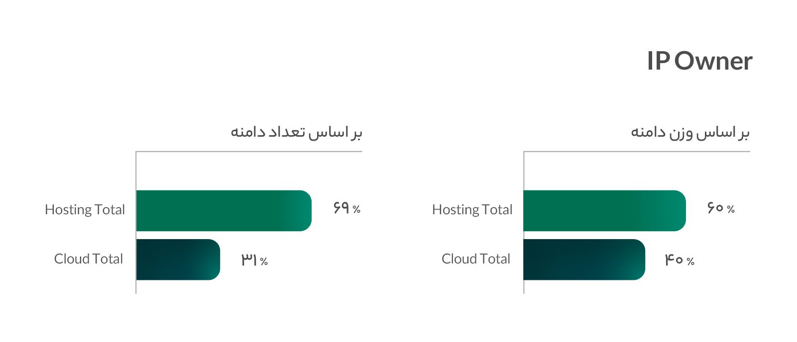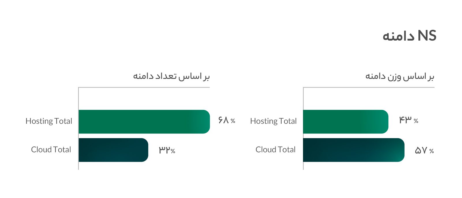 در بخش اول گزارش که پژوهش براساس تعداد دامنهها انجام شده است نسبت سهم سرویسهای سنتی هاستینگ به سرویسهای ابری از دامنههای ایرانی ۷۰ به ۳۰ است. این در حالی است که با وزن دادن به دامنهها برای بررسی میزان اثرپذیری کاربران نهایی خدمات آنلاین، این نسبت بهنفع سرویسهای ابری تغییر میکند؛ براساس NS دامنه تاثیر خدمات ابری روی کاربران نهایی خدمات آنلاین نسبت به خدمات سنتی هاستینگ حدود ۶۰ به ۴۰ است.