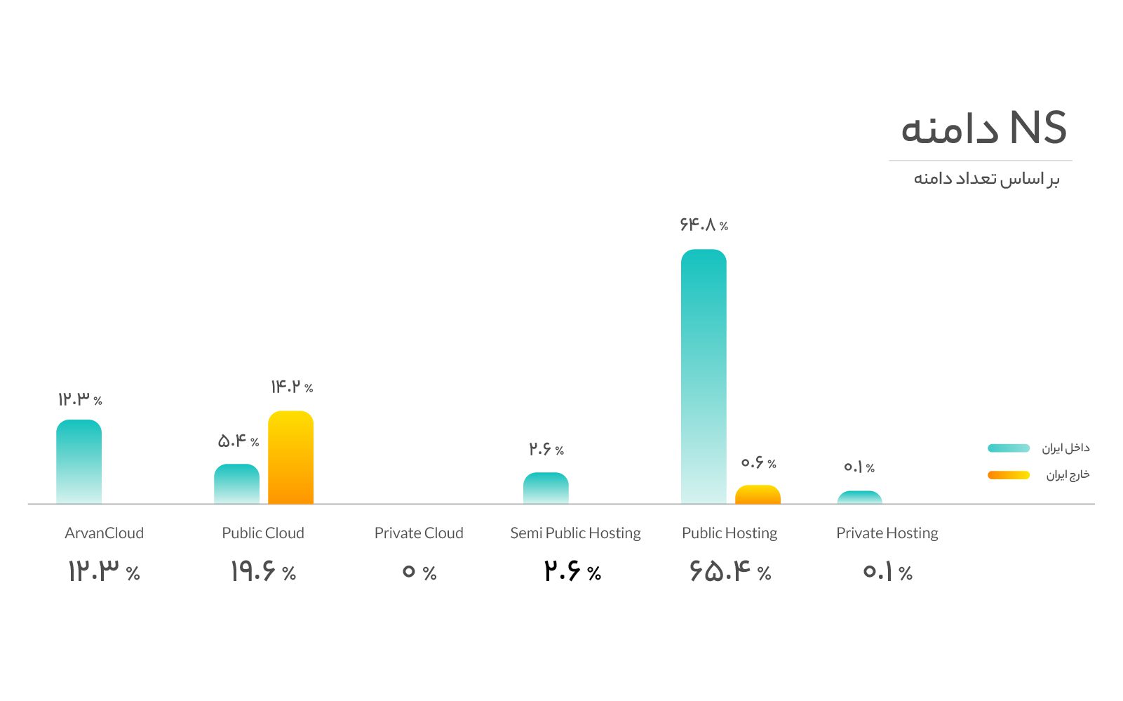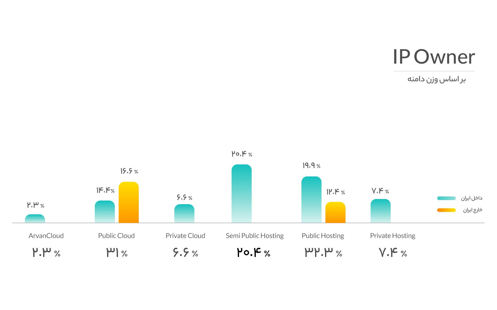 - ۵۰ تا ۶۸درصد وبسایتهای ایرانی از هاستینگهای سنتی داخلی و ۱ تا ۱۸درصد وبسایتهای ایرانی از هاستینگهای سنتی خارجی خدمات دریافت میکنند.