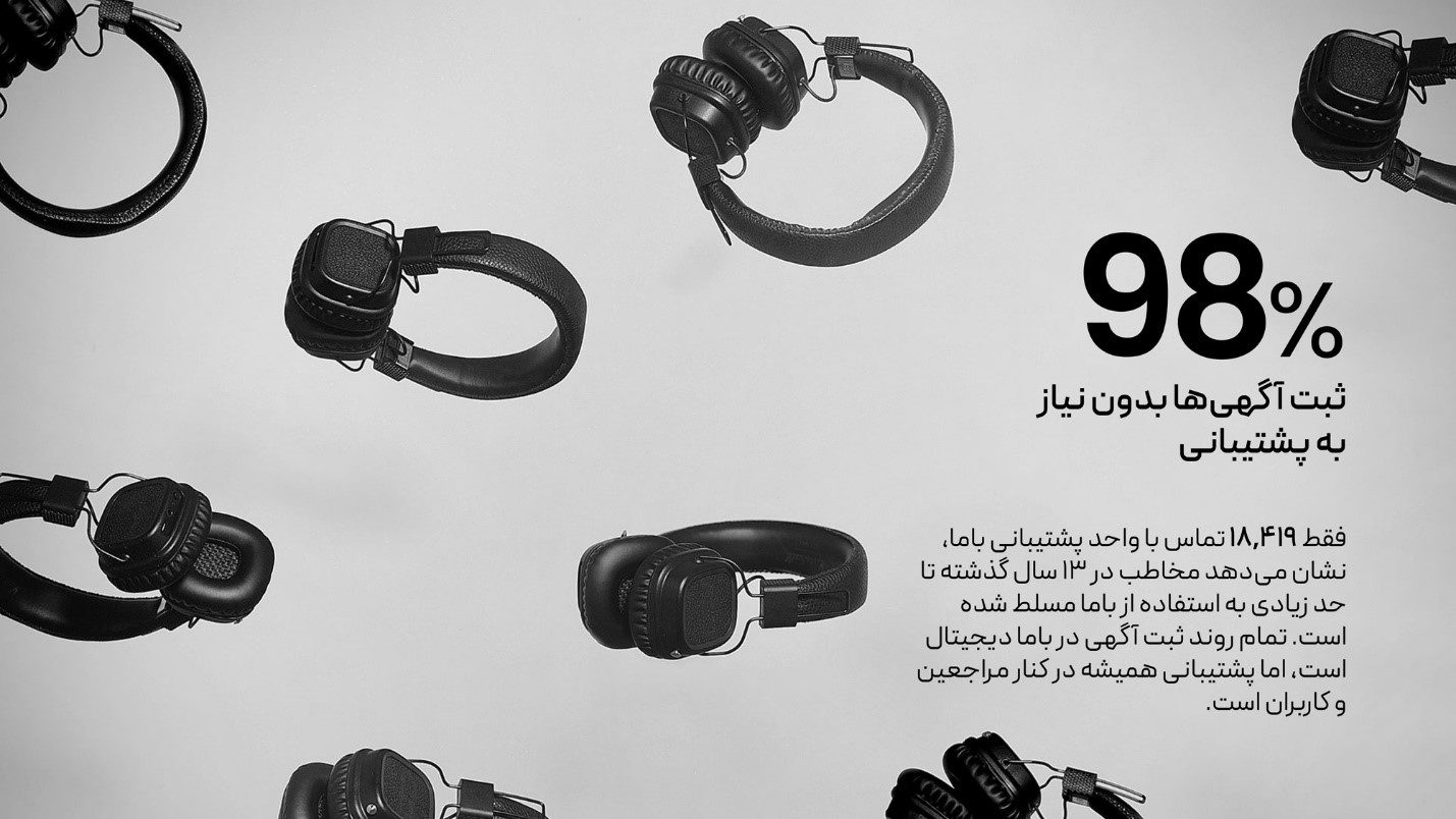 «باما» در بخش آخر گزارش خود به بخش منابع انسانی این شرکت و واحد پشتیبانی آن پرداخته است. کاربران «باما» در سال 1400 تنها 18419 تماس با پشتیبانی داشتهاند که این آمار نشان میدهد 98 درصد آگهیها بدون نیاز به کمک واحد پشتیبانی ثبت شدهاند.