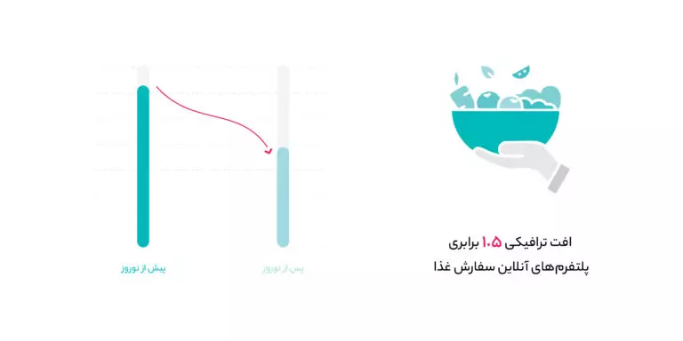 ترکیب آمار ترافیکی پلتفرمهای سفارش آنلاین غذا نشان میدهد پس از روزهای اوج این پلتفرمها در روزهای پایانی مشرف به تعطیلات نوروز، اقبال کاربران به سفارش آنلاین غذا در تعطیلات با افت ترافیکی محسوسی همراه بوده، بهطوری که ترافیک این پلتفرمها با کاهش یک و نیمبرابری نسبت به روزهای اوج مواجه بوده است؛ روزهایی که احتمالن با پختوپز خانگی نوروزی سپری شدند.