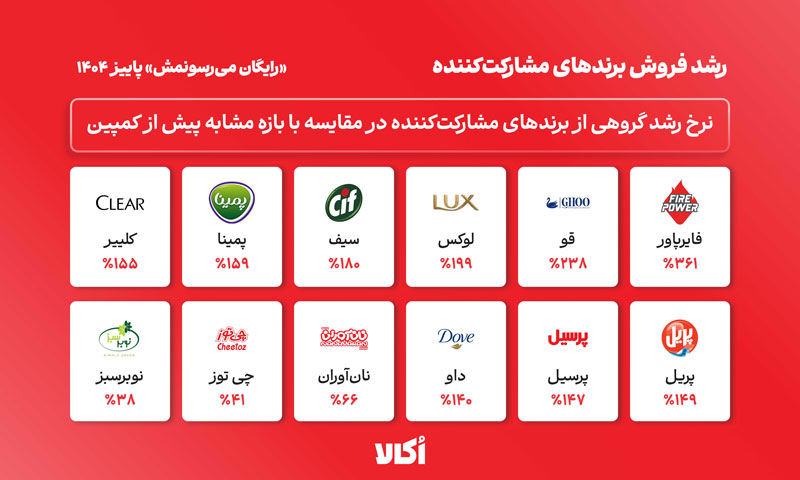 گفتنی است که در جریان کمپین پاییز ۱۴۰۴ اُکالا، گروهی از برندها در جایگاه فروش اُتایم تا ۶ برابر رشد فروش را نیز تجربه کرده‌اند.
